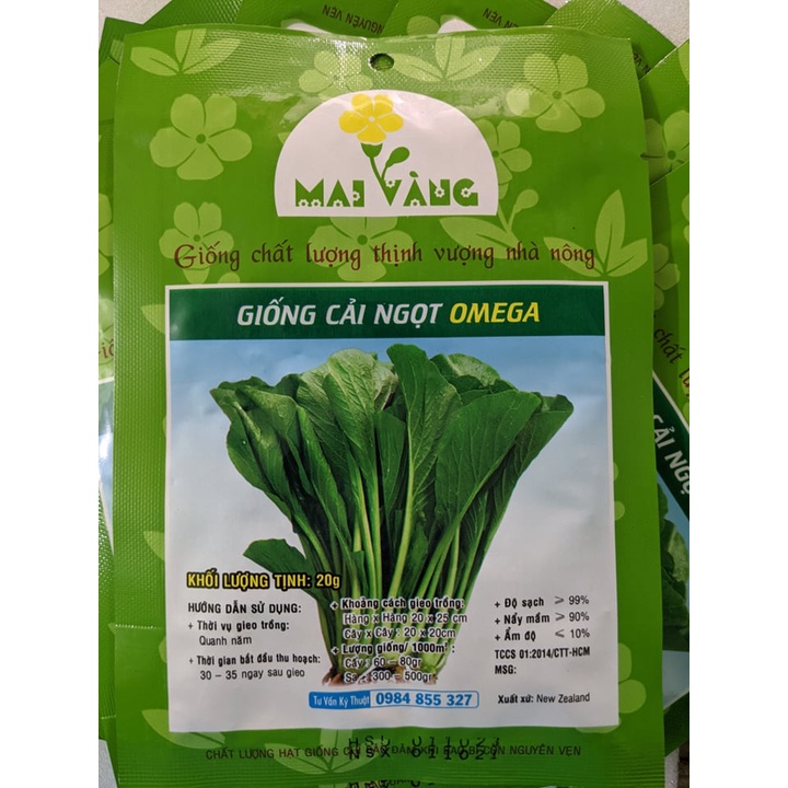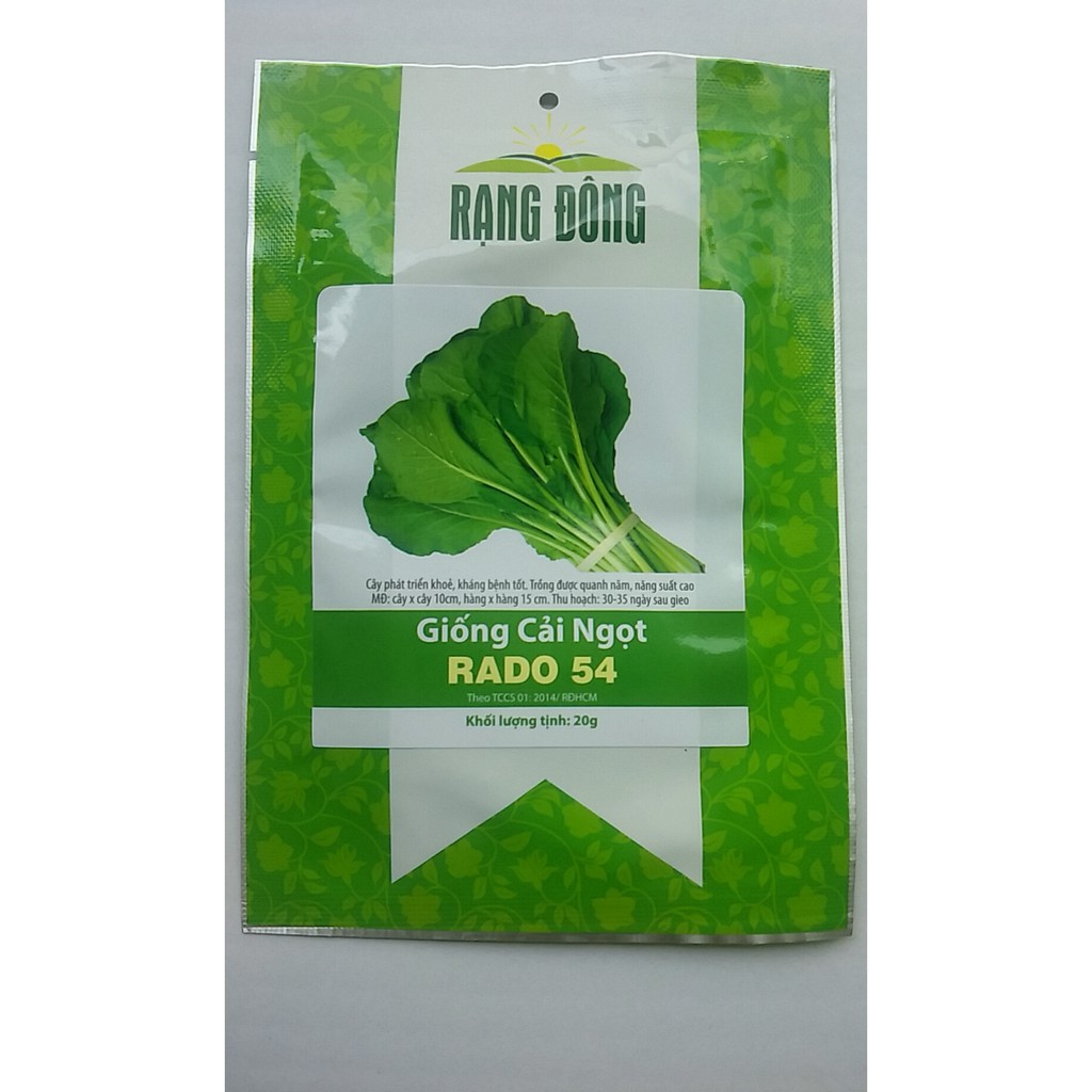 Hạt giống cải ngọt 20g. Cả 2 thương hiệu Rạng Đông hoặc Mai Vàng đồng giá và chất lượng quý khách yên tâm-Cây phát triển khỏe