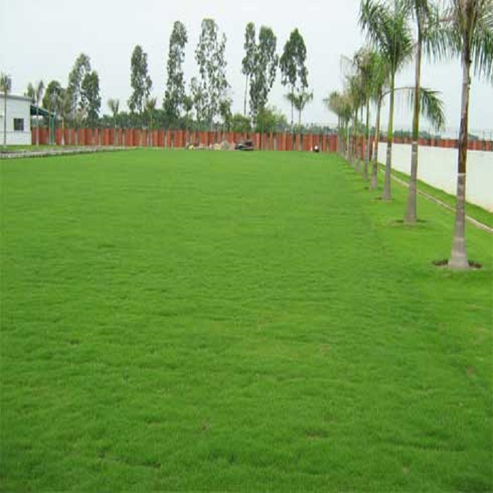 Chuẩn bị đất trồng cỏ: làm sạch cỏ dại, tưới thật nhiều nước, đầm đất để không bị lún. Làm tơi xốp đất trên bề mặt, tạo hệ thống thoát nước. Rải một lớp phân bón ( tro trấu + mùn dừa + đất mùn ) tùy thuộc vào loại đất để rải dày hay mỏng. Rồi dùng cào để san đều phân bón.
