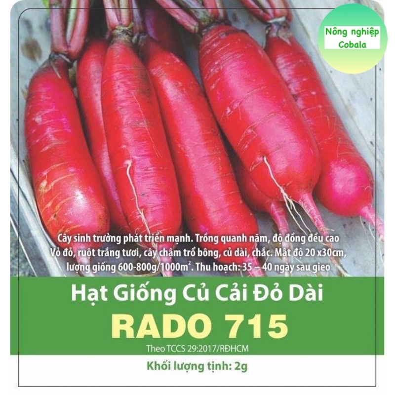 Nhà cửa & Đời sống > Làm vườn > Hạt giống & chất hỗ trợ trồng cây || Hạt Giống Củ Cải Đỏ Dài (RD715) Năng Suất Cao 2grCòn hàng