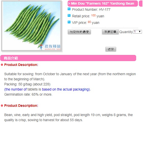 THÔNG TIN HẠT GIỐNG ĐẬU COVE ĐÀI LOAN