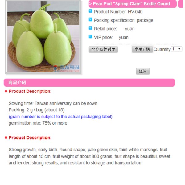 THÔNG TIN HẠT GIỐNG BẦU ĐÀI LOAN BROOM