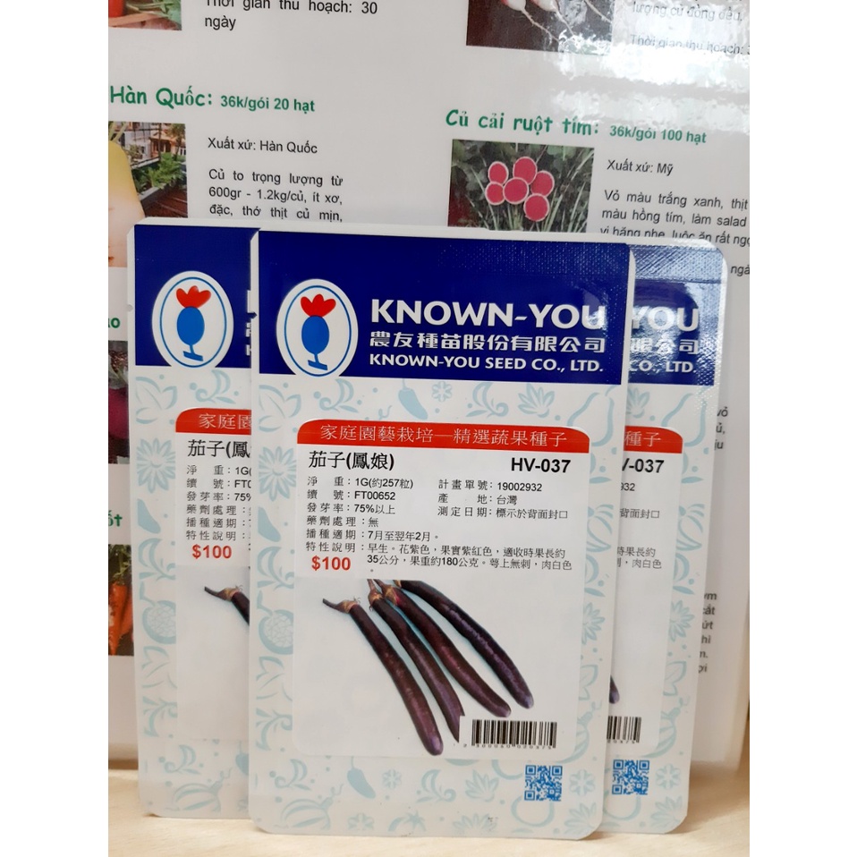 Giới thiệu [Hạt giống Đài Loan] Hat giống cà tím dài Đài Loan - tỷ lệ nảy mầm 90%
