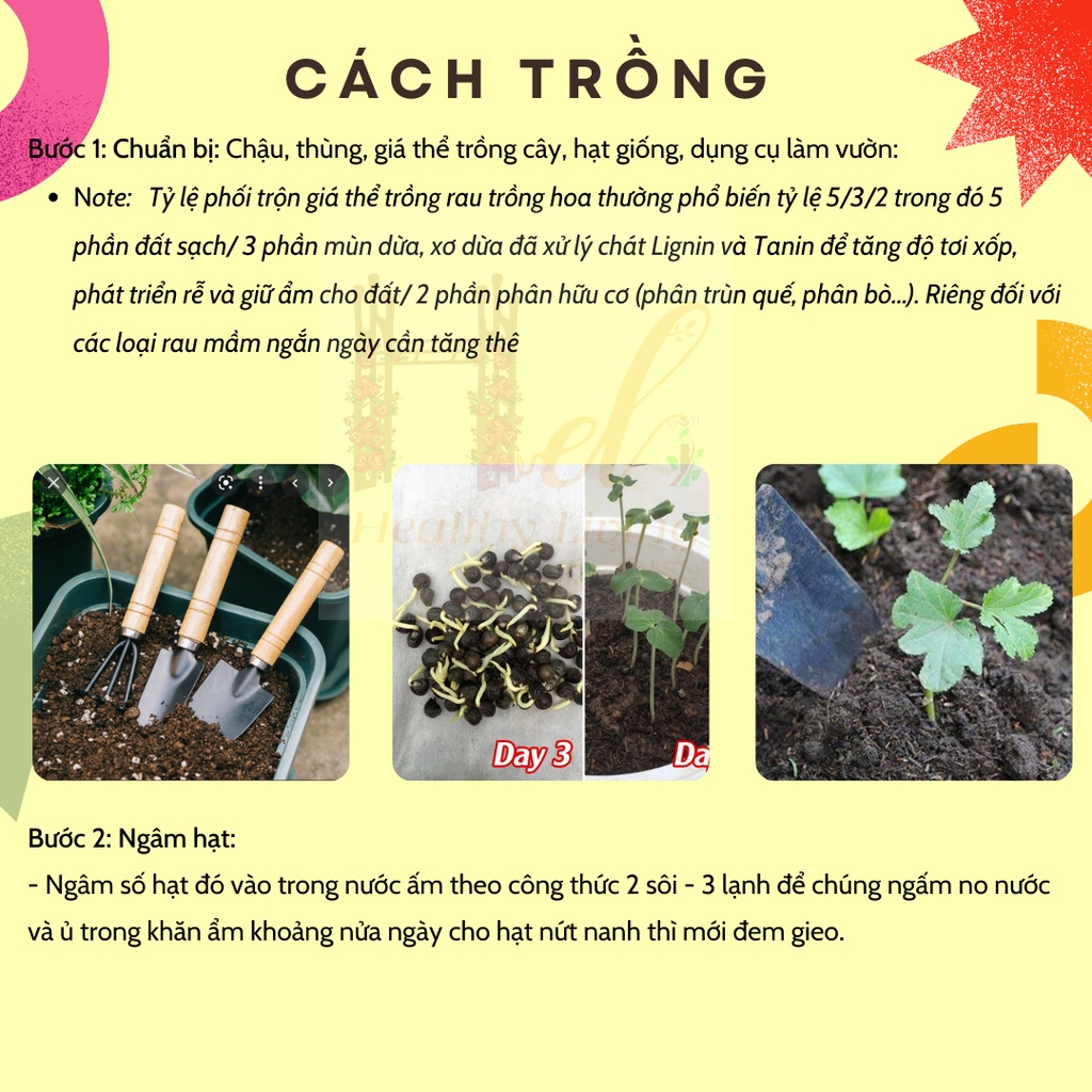ngâm số hạt đó vào trong nước ấm theo công thức 2 sôi - 3 lạnh để chúng ngấm no nước và ủ trong khăn ẩm khoảng nửa ngày cho hạt nứt nanh thì mới đem gieo.