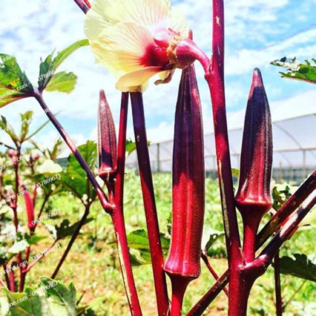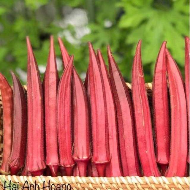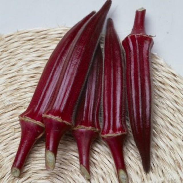 - Đậu bắp đỏ (đậu bắp tím) giàu vitamin C, vitamin A, folacin và vitamin B, cây sinh trưởng phát triền mạnh mẽ có thể trồng quanh năm