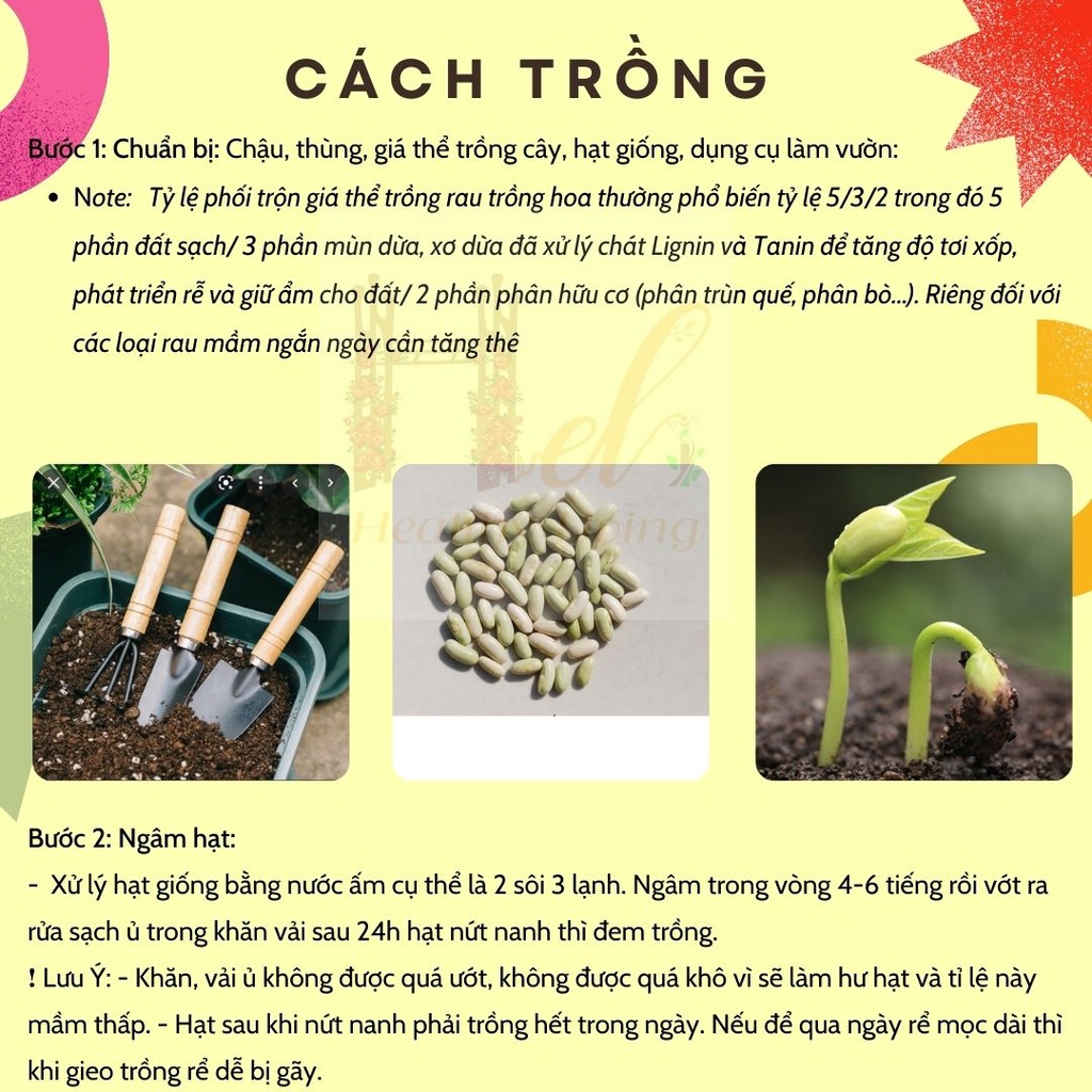 - Hạt sau khi nứt nanh phải trồng hết trong ngày. Nếu để qua ngày rể mọc dài thì khi gieo trồng rể dễ bị gãy.