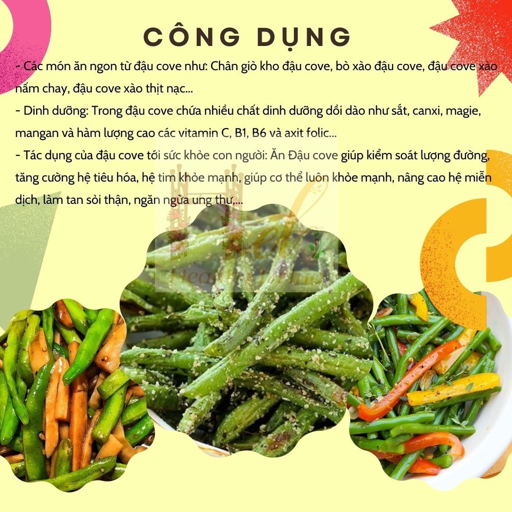 - Tác dụng của đậu cove tới sức khỏe con người: Ăn Đậu cove giúp kiểm soát lượng đường, tăng cường hệ tiêu hóa, hệ tim khỏe mạnh, giúp cơ thể luôn khỏe mạnh, nâng cao hệ miễn dịch, làm tan sỏi thận, ngăn ngừa ung thư,...