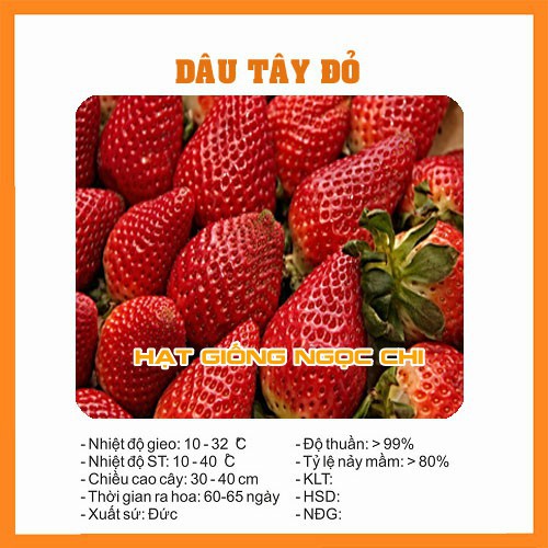 Dâu tây đỏ là loại quả thơm ngon được nhiều bạn trẻ ưa thích. Hạt giống dâu tây đỏ sẽ cho ra đời những trái dâu chín mọng, căng bóng. Nó chính là nguyên liệu làm ra những loại nước uống, sữa bổ dưỡng đầy hấp dẫn.