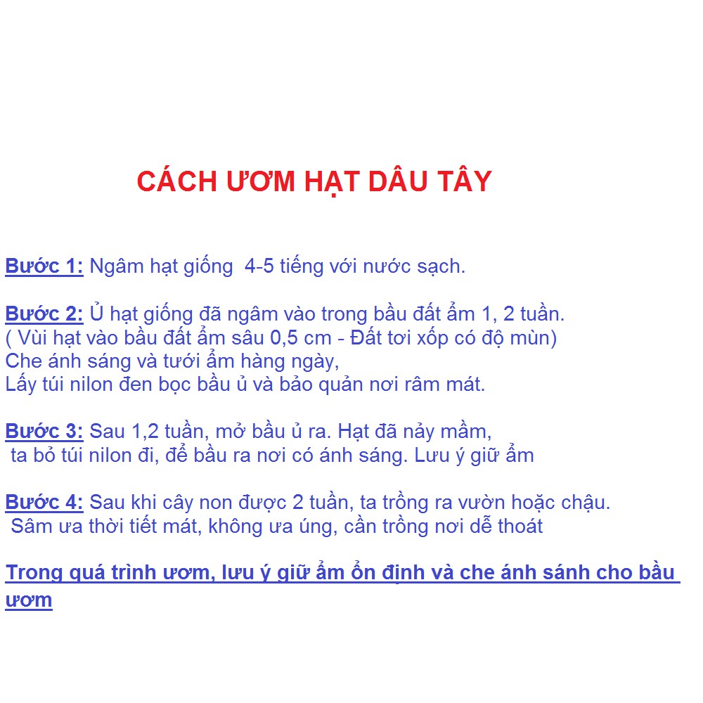 Nhà cửa & Đời sống > Làm vườn > Hạt giống & chất hỗ trợ trồng cây || Hạt giống dâu tây đỏ gói 100 hạt xuất xứ Nhật BảnCòn hàng