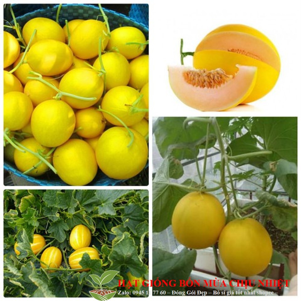 🍈🍈 HẠT GIỐNG DƯA LÊ KIM CÔ LƯƠNG SIÊU NGỌT 🍈🍈 - Giá : 40k/gói 10 hạt. - Thời vụ : Miền Nam trồng được quanh năm, miền Bắc trồng vụ xuân và vụ thu đông. - Thời gian sinh trưởng: 62-65 ngày (tùy thời vụ). - Đặc điểm : Trái có hình tròn hơi oval, vỏ trơn khi chín màu vàng kim, trái đồng đều, trọng lượng trái 1,7-2,5 kg. Thịt trái màu vàng cam, ăn rất ngon, giòn và ngọt. PHƯƠNG PHÁP TRỒNG TẠI NHÀ 1. Chuẩn bị dụng cụ trồng, đất trồng và hạt giống Dụng cụ trồng Bạn có thể tận dụng bao nion, bao xi măng, chậu, khay, thùng xốp có sẵn trong nhà hoặc mảnh đất trống trong vườn để trồng dưa lê Kim Cô Nương Lưu ý: Dưới đáy khay đục lỗ để thoát nước. Đất trồng Dưa lê Kim Cô Nương ưa phát triển ở các loại đất giàu dinh dưỡng, thoát nước tốt. Nơi đặt chậu ươm cây mầm cần có ánh sáng và không được đọng nước bên dưới. Bạn có thể mua đất sẵn hoặc tiến hành trộn đất với phân bò hoai mục, phân gà, phân trùn quế, vỏ trấu, xơ dừa, than bùn, mùn hữu cơ… Nên bón lót với vôi rồi phơi ải từ 7 - 10 ngày trước trồng để xử lý các mầm bệnh có trong đất. 2. Trồng cây Cách ngâm ủ hạt: Ngâm hạt vào nước ấm (2 sôi + 3 lạnh) trong 3 - 4 tiếng rồi vớt ra, để ráo. Sau đó gói vào khăn ẩm sạch, ủ ấm 24 - 30 tiếng, thấy hạt nứt nanh thì đem gieo. Có thể gieo trực tiếp ra ruộng hoặc gieo vào bầu. Nếu gieo vào bầu, khi cây con được 2 lá mầm thì cấy ra dụng cụ trồng (sau gieo 8 - 10 ngày). Sau khi gieo cấy xong cần tưới nước cho cây. 3. Chăm sóc Tưới nước: Lượng nước tưới phụ thuộc vào cơ cấu đất, thời tiết và thời kỳ phát triển của cây, nên tưới vào lúc sáng hoặc chiều mát. Bón phân: Lần 1: Sau khi gieo hạt khoảng 18 - 20 ngày, tiến hành bón đợt 1 bằng phân hữu cơ, phân bò, phân dê, phân trùn quế. Lần 2: 7 - 10 ngày sau khi đậu trái. Lần 3: 16 - 18 ngày sau khi đậu trái. Bấm ngọn, tỉa nhánh, chọn trái: Để một dây chính: Cây không cần bấm ngọn, định hướng dây bò theo hướng vuông góc với mặt líp. Dưa lê có đặc tính trái nằm trên dây chèo, muốn trái to, mỗi dây để một trái, cần cắt bỏ chèo trên dây chính từ lá thứ 10 trở vào gốc trước khi để trái. Vị trí để trái tốt nhất là lá thứ 10 đến lá thứ 15. Trên chèo chọn trái để 2 lá (kể cả lá để trái), rồi bấm ngọn. Để 2 dây chèo: Cây được 4 - 5 lá thật tiến hành bấm ngọn chính, sau khi bấm ngọn được 7 - 10 ngày, chọn 2 nhánh tốt nhất, định hướng dây bò theo hướng vuông gốc với mặt líp. Mỗi gốc nên để một trái, cần cắt bỏ chèo trên cây nhánh từ lá thứ 7 trở vào gốc trước khi để trái. Vị trí để trái tốt nhất là lá thứ 7 đến lá thứ 10. Trên chèo chọn trái để 2 lá (kể cả lá để trái), rồi bấm ngọn. 4. Thu hoạch Sau khi đậu trái khoảng 28 - 35 ngày, vỏ trái chuyển sang màu vàng đặc trưng của giống, là thời kỳ thích hợp cho thu hoạch. DGiá DEGENAI
