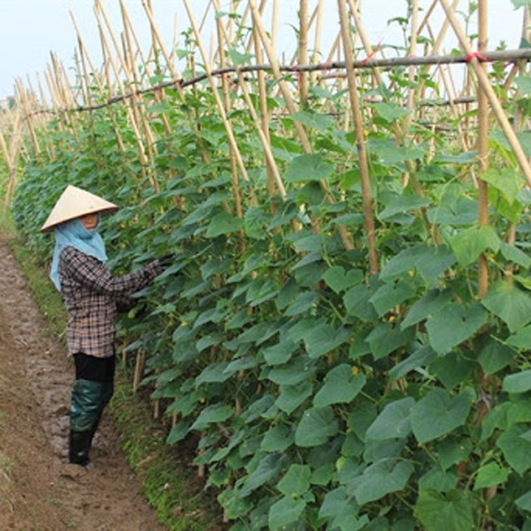 - Làm giàn: Chiều cao giàn từ 2 - 2,5m thay đổi tùy giống, hình dạng chữ V ngược, chữ X hoặc chữ U ngược.Vật liệu là chà hay làm khung căng dây nilon.