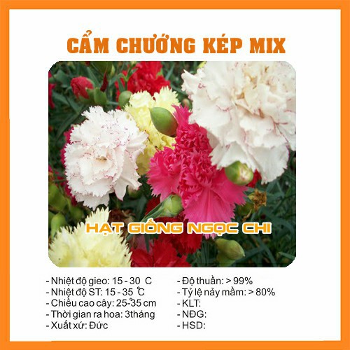 - Mã sản phẩm: Hạt giống hoa Cẩm Chướng Kép Mix;
