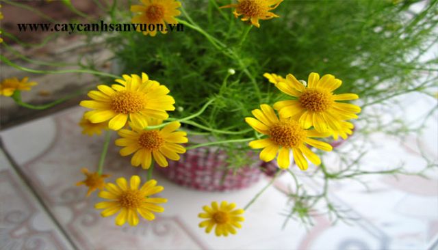 – Bông hoa nhỏ, màu vàng tươi, nhụy hoa màu vàng nâu ở giữa.