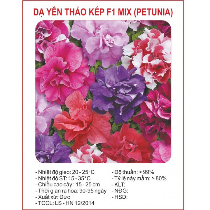 Nhà cửa & Đời sống > Làm vườn > Hạt giống & chất hỗ trợ trồng cây || Hạt giống hoa dạ yến thảo kép Mix nhiều màu gói 50 hạt xuất xứ ĐứcCòn hàng