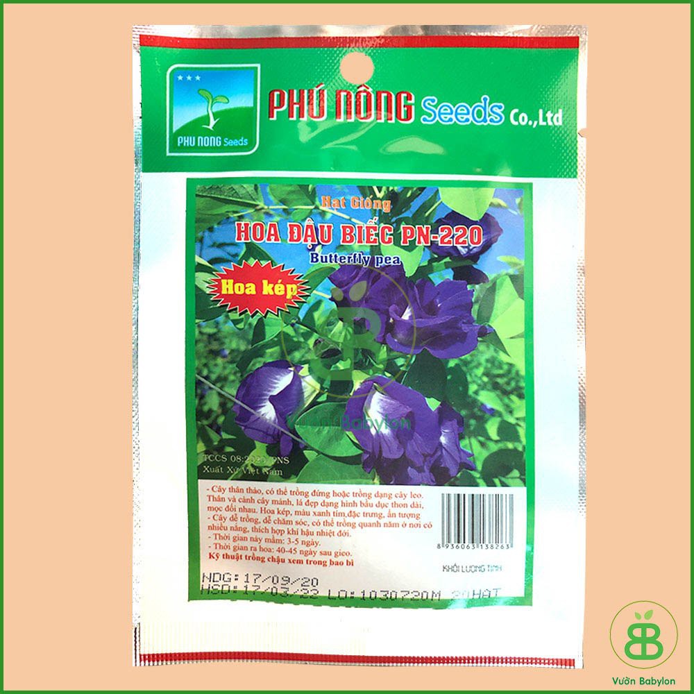 Vườn Babylon Xin Kính Chào Quý Khách!Hạt Giống Hoa Đậu Biếc (KÉP) 20 Hạt Hoa Nhiều, Dễ Trồng