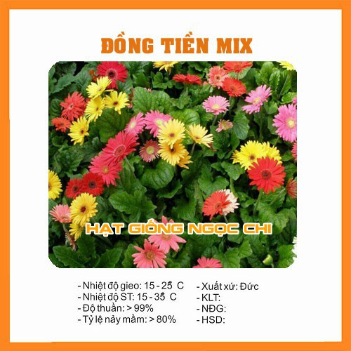 - Loại hoa/cây: Hạt giống hoa đồng tiền kép mix, hạt giống hoa