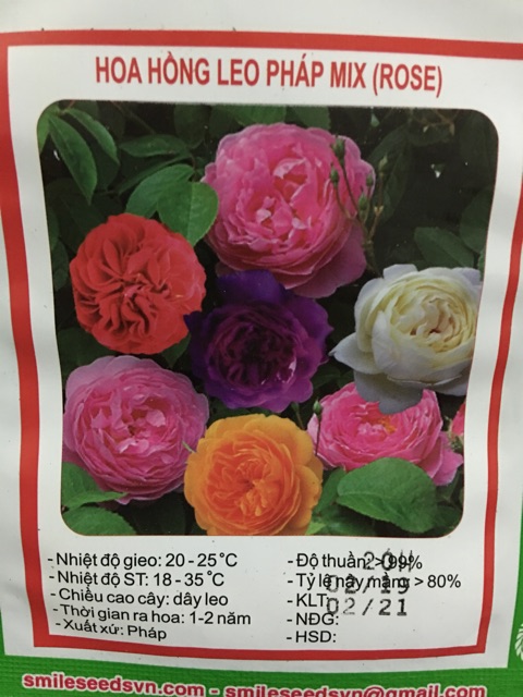 Giới thiệu Hạt giống hoa hồng leo Pháp nhiều màu, sai hoa