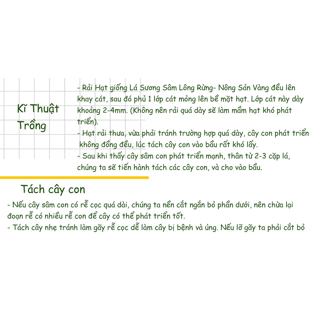 Nhà cửa & Đời sống > Làm vườn > Hạt giống & chất hỗ trợ trồng cây || Hạt giống Lá Sương Sâm Lông Rừng ( Gói 30 Hạt ) - Nông Sản VàngCòn hàng