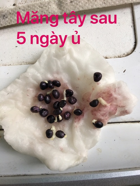 – Trong vòng từ 2-7 ngày các hạt giống sẽ lần lượt nứt nanh mầm rẽ con( điều kiện khí hậu không thuận lợi sẽ có những hạt khoảng 12 ngày mới nứt nanh). Ta lật lớp vải thun phía trên lên rồi cẩn thận lấy những hạt đã nứt nanh mang cho vào trong bầu ươm.