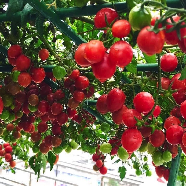 🌱 Đặc điểm: ra quả theo chuỗi dài màu đỏ, rất ngọt, cây có chiều cao khoảng 3m, có thể leo giàn như cà chua bach tuộc, cây phát triển siêu khoẻ, chịu nhiệt tới ngưỡng 40 độ C nên có thể trồng đuợc quanh năm các vùng.