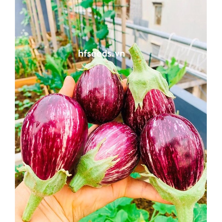 🍀 Đặc điểm: form hình quả trứng, vỏ sọc màu tím sáng rất đẹp thit dày, ngọt, quả to khoảng 150gr/quả, sai quả và kháng bệnh khoẻ.