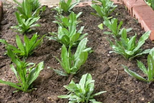 khoảng cách trồng: hàng cách hàng 10-15cm, cây cách cây trên hàng 10cm