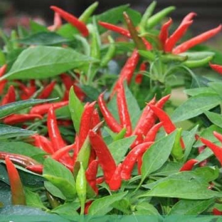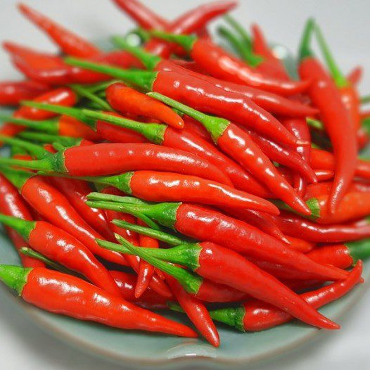 Hạt giống ớt chỉ thiên có quả đỏ, cứng, mọng, vị cay, vừa trồng làm cảnh, vừa để ăn.