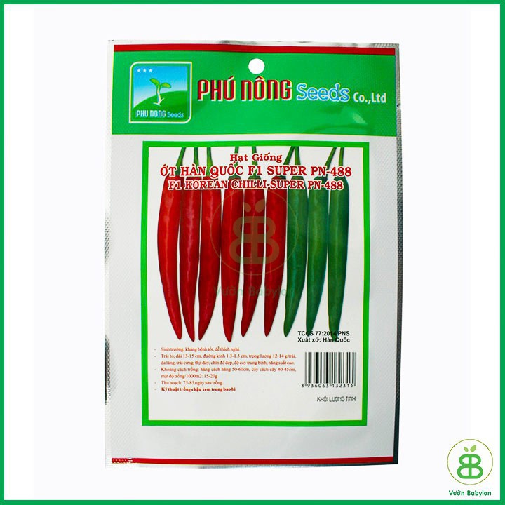 Vườn Babylon Kính Chào Qúy Khách!Hạt giống Ớt Trái Dài Hàn Quốc 0,2Gr Loại 1