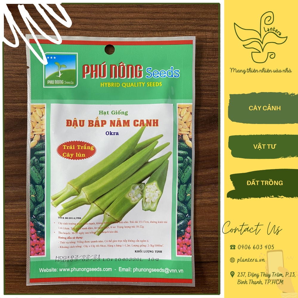 Nhà cửa & Đời sống > Làm vườn > Khác || Hạt giống Phú Nông - Đậu bắp năm cạnh ( Đậu bắp trắng) Gói 10g - Hạt Giống - Rau Ăn QuảCòn hàng