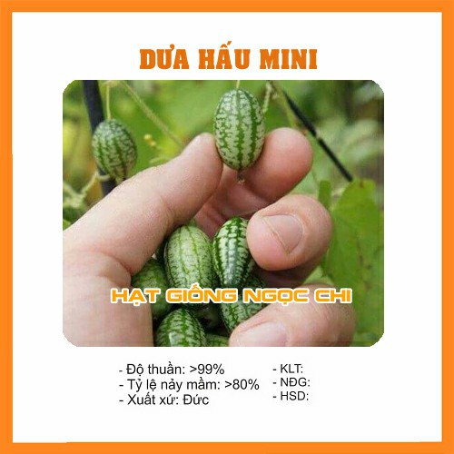 Dưa hấu mini là loại cây thân leo, thân mảnh, cho trái quanh năm. Dưa hấu mini cho trái nhỏ như dưa chuột trái bé, hương vị như dưa chuột, có vị chua dễ chịu. Dưa hấu mini có thể sử dụng trồng làm cảnh, chế biến thành các món muối, ướp.- Mã sản Phẩm: Hạt giống dưa hấu mini