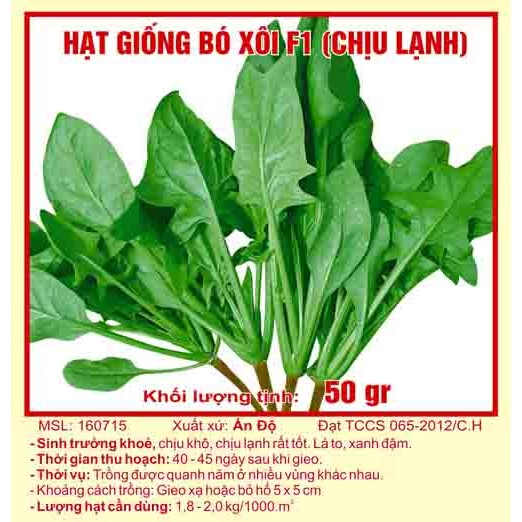 Nhà cửa & Đời sống > Làm vườn > Hạt giống & chất hỗ trợ trồng cây || Hạt giống rau bó xôi F1Còn hàng