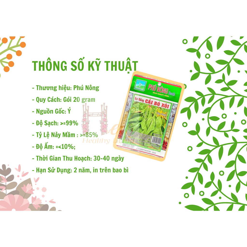 CAM KẾT HÀNG CHÍNH HÃNG, HOÀN 100% TIỀN NẾU SẢN PHẨM NHẬN ĐƯỢC KHÁC BAO BÌ QUẢNG CÁOCải Bó Xôi hay còn được gọi là rau chân vịt (thủy thủ Popeye ăn trong phim hoạt hình), là loài thực vật có hoa thuộc họ dền, đặc biệt chịu được nóng và chịu mưa mà giống khác không thể trồng được.