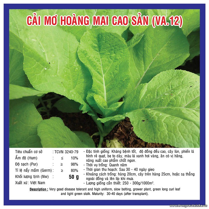 Giới thiệu Hạt giống rau cải mơ Hoàng Mai gói 20 gram xuất xứ Việt Nam