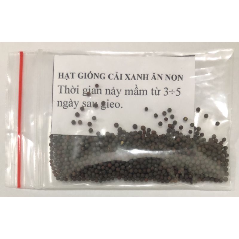 Nhà cửa & Đời sống > Làm vườn > Hạt giống & chất hỗ trợ trồng cây || Hạt giống rau cải xanh ăn non, đóng túi zip, gói khoảng 200 hạtCòn hàng