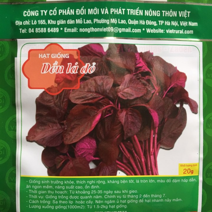 Nhà cửa & Đời sống > Làm vườn > Hạt giống & chất hỗ trợ trồng cây || Hạt giống rau dền đỏ 20grCòn hàng