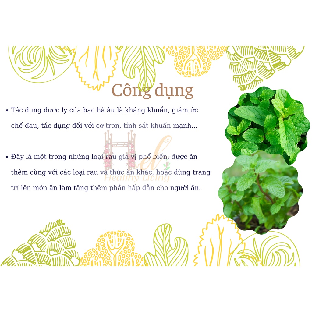 CAM KẾT HÀNG CHÍNH HÃNG, HOÀN 100% TIỀN NẾU SẢN PHẨM NHẬN ĐƯỢC KHÁC BAO BÌ QUẢNG CÁOBạc Hà Âu còn được gọi là Húng Lủi, là loại cây có mùi thơm hắc vì có chứa tinh dầu menthol, bạc hà sinh trưởng, phát triển khỏe, là cây gia vị đa tác dụng: làm hương liệu, rau ăn kèm…