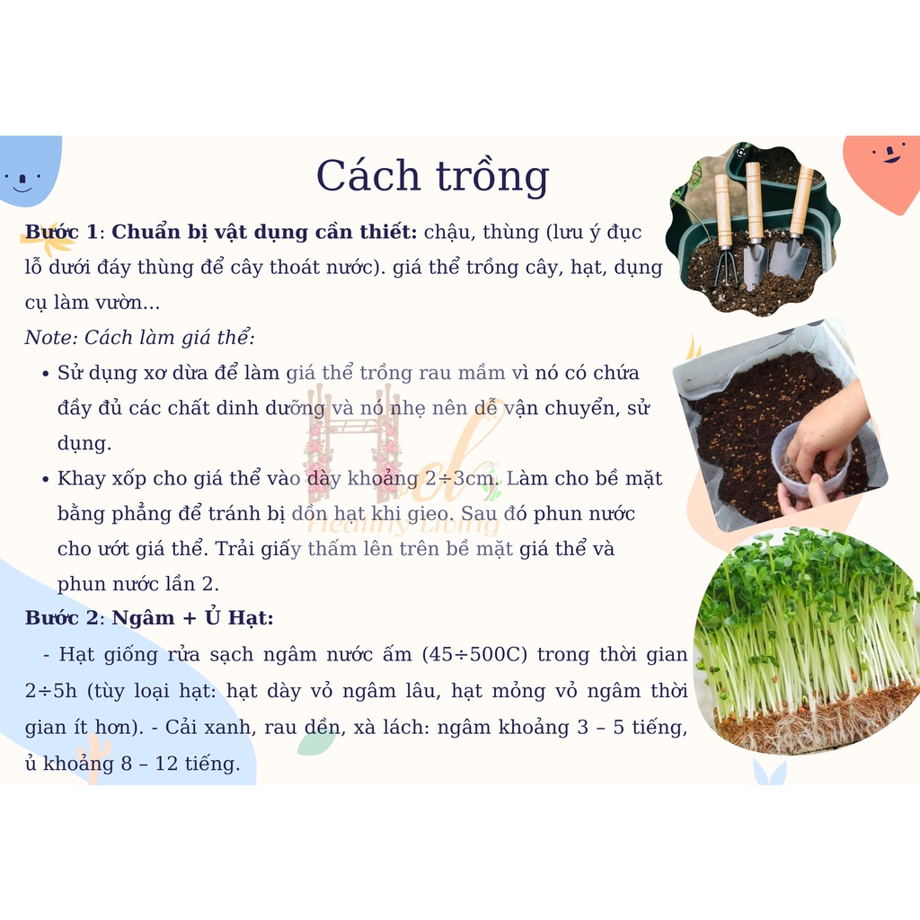 Giới thiệu Hạt Giống Rau Mầm Cải Mầm Giàu Dinh Dưỡng - Trồng Hạt Giống Rau Củ Quả Bằng Đất Sạch, Xơ Dừa, Mùn Dừa Và Phân Bón Hữu Cơ