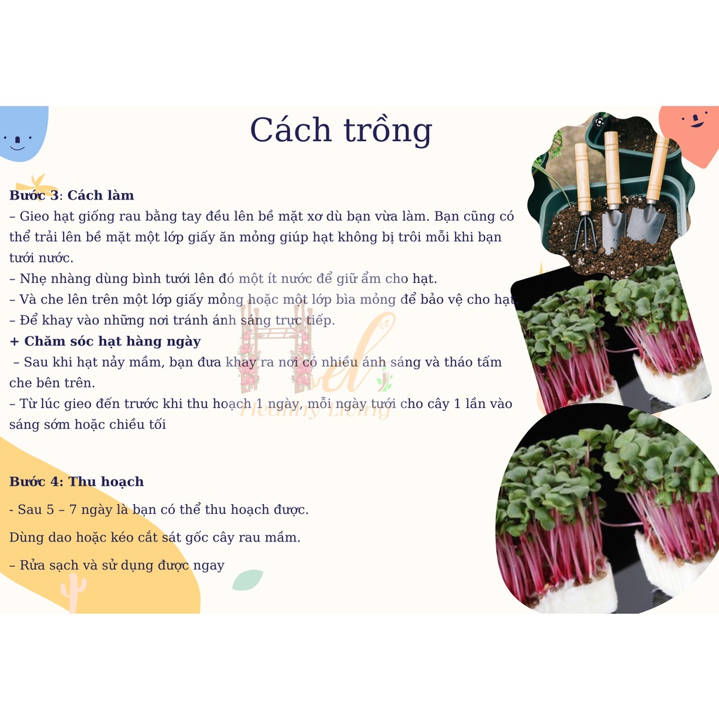 Nhà cửa & Đời sống > Làm vườn > Hạt giống & chất hỗ trợ trồng cây || Hạt Giống Rau Mầm Củ Cải Đỏ - Trồng Hạt Giống Rau Củ Quả Bằng Đất Sạch, Xơ Dừa, Mùn Dừa Và Phân Bón Hữu CơCòn hàng