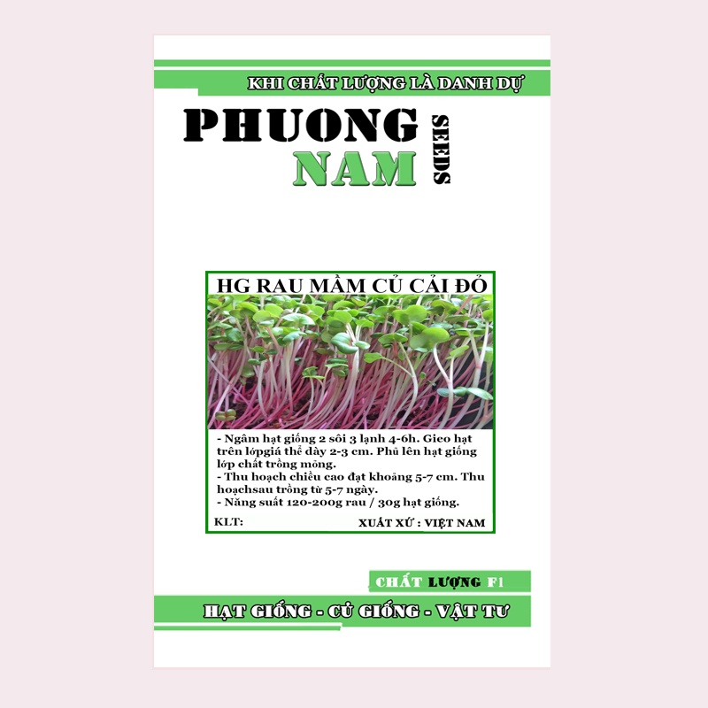 - Hạt giống: hạt giống rau mầm củ cải đỏ chất lượng tốt sẽ quyết định chất lượng rau mầm khi thu hoạch. Chúng tôi gợi ý bạn hãy chọn mua tại hạt giống Phương Nam để nhận được những hạt giống chất lượng, tỷ lệ nảy mầm cao, đồng đều, đặc biệt không có chất bảo quản, chống mối mọt.