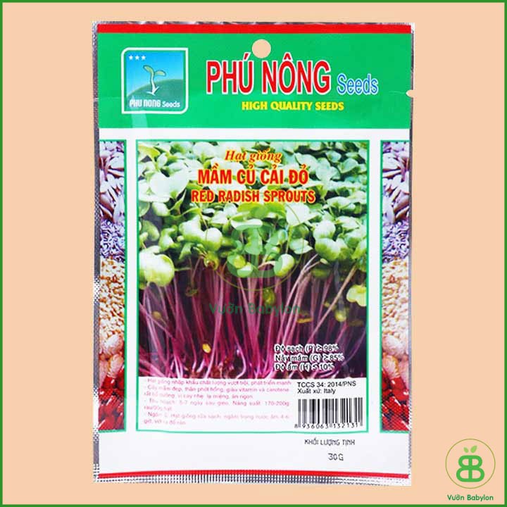 Vườn Babylon Kính Chào Quý Khách!Hạt Giống Rau Mầm Củ Cải Đỏ 30GR Siêu Giòn