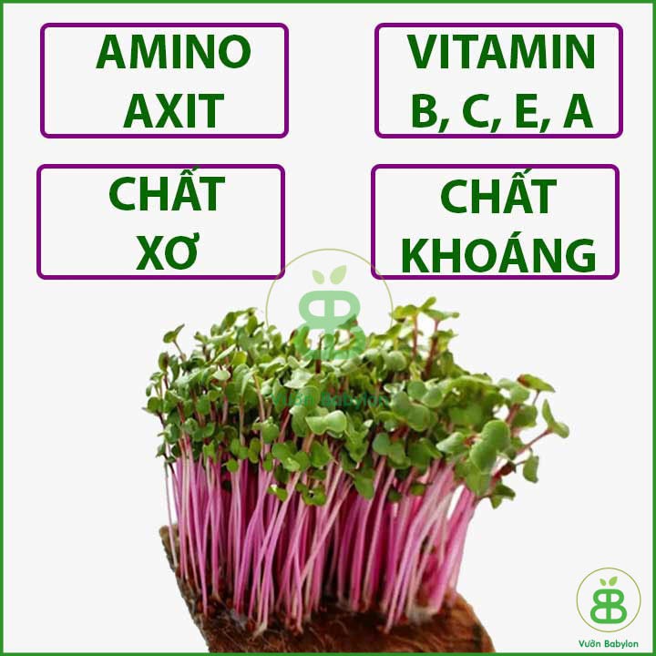 - Rau mầm củ cải đỏ rất dễ tiêu hóa, có nhiều vitamin, chất khoáng hữu cơ, axit amin, chất đạm, các enzym có ích, và các chất phytochemical. Các chất dinh dưỡng này rất quan trọng đối với sức khỏe con người.