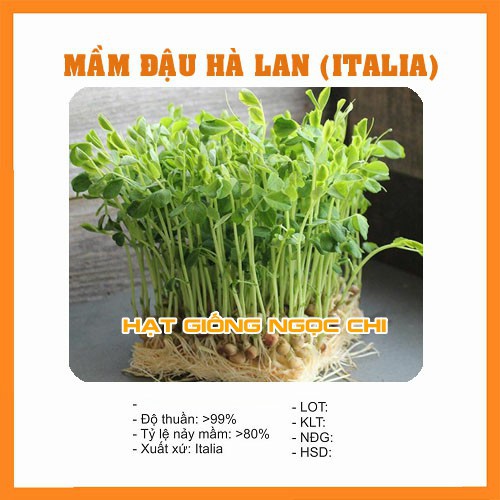 Mầm đậu Hà Lan là loại rau giàu chất dinh dưỡng, thường được các chị em dùng rất phổ biến trong bữa ăn cho gia đình. Ăn mầm đậu Hà Lan có tác dụng tốt trong việc thanh lọc cơ thể, cung cấp vitamin E, tăng cường sức đề kháng cho cơ thể. Đồng thời ngăn ngừa một số bệnh nguy hiểm cho con người.- Mã sản Phẩm: Hạt giống mầm đậu Hà Lan