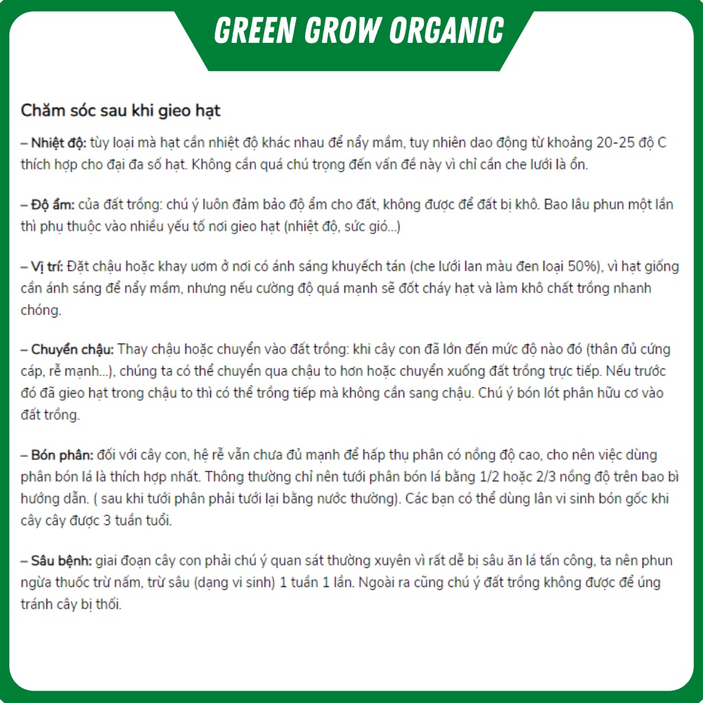 Nhà cửa & Đời sống > Làm vườn > Hạt giống & chất hỗ trợ trồng cây || Hạt giống rau mùi GREEN GROW ORGANIC hạt giống hữu cơ chịu nhiệt tốt tỉ lệ nảy mầm caoCòn hàng