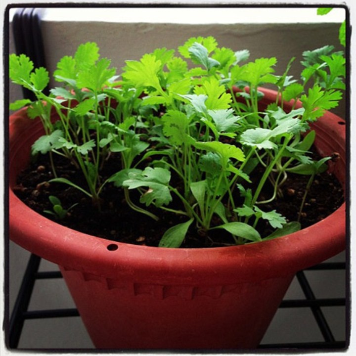 Bước 4: Khi rau mùi cao được hơn 15 cm ta nên cắt nhánh lá nó để ăn, bạn có thể bảo quản ở tủ lạnh (chỉ được 2 – 3 ngày). Mỗi lần cắt, vài ngày sau sẽ mọc thêm nhiều nhánh mới, giúp cây phát triển nhiều.