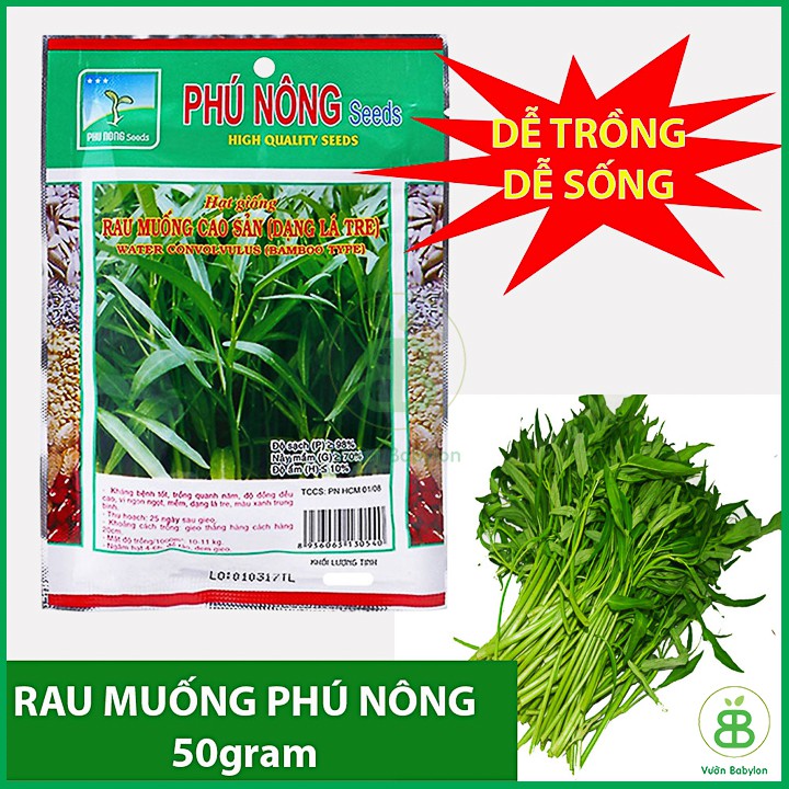 Vườn Babylon Xin Kính Chào Qúy Khách!Hạt Giống Rau Muống Cao Sản 50Gr