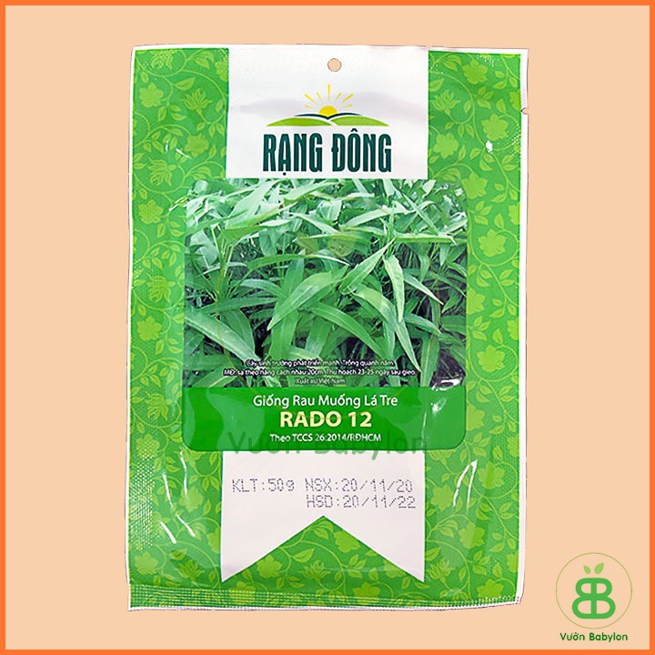 Vườn Babylon Xin Kính Chào Qúy Khách!Hạt Giống Rau Muống Lá Tre 50Gr Dễ Trồng, Năng Suất Cao
