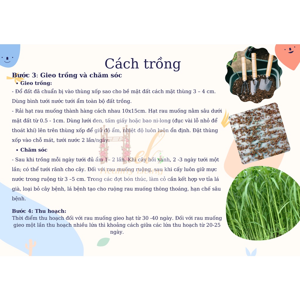 Giới thiệu Hạt Giống Rau Muống Lá Tre Cao Sản 50Gr, Dễ Trồng - Trồng Hạt Giống Rau Củ Quả Sạch Bằng Đất Sạch, Xơ Dừa, Phân Hữu Cơ