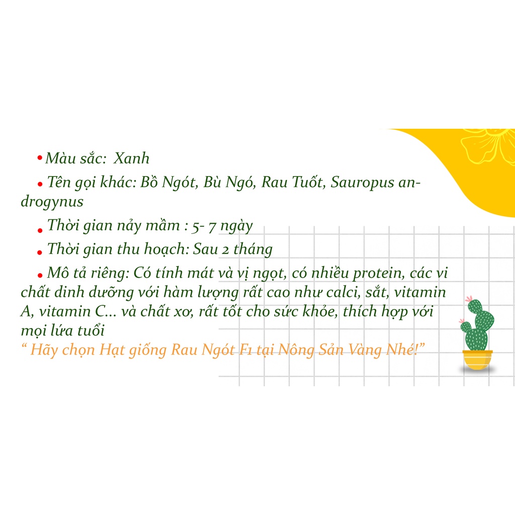 Thương hiệu: Nông Sản Vàng | Xem thêm các sản phẩm Hạt giống của Nông Sản VàngMô tả ngắn