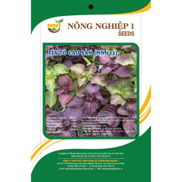 HẠT GIỐNG TÍA TÔ CAO SẢN 5G- Đặc tính giống: Kháng bệnh tốt; thân vuông, có lông; lá dày và dài, mép lá có răng cưa, mặt trên có màu xanh, mặt dưới có màu xanh phớt tím.- Thời vụ trồng: Quanh năm.