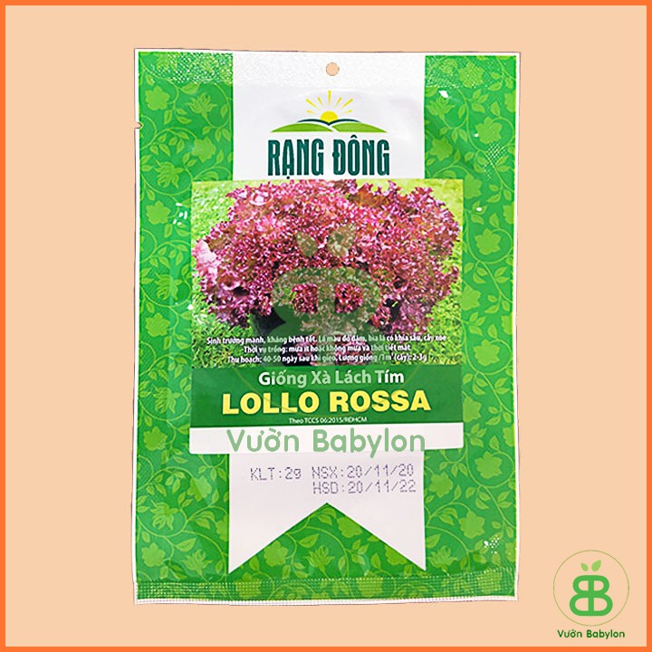Vườn Babylon Kính Chào Qúy Khách!Hạt Giống Xà Lách Tím Lollo Rossa 2Gr Dễ Trồng