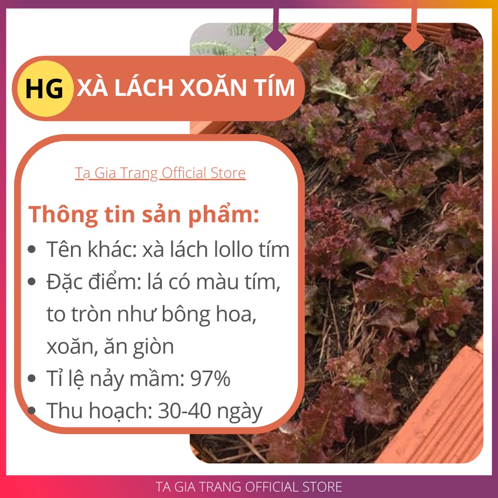 Nhà cửa & Đời sống > Làm vườn > Hạt giống & chất hỗ trợ trồng cây || Hạt giống xà lách xoăn tím (xà lách tím - xà lách lolo tím) - Shop hạt giống Tạ Gia TrangCòn hàng
